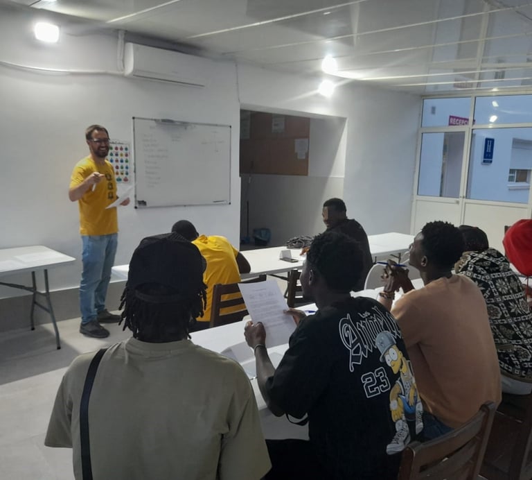Estas clases son mucho más que un espacio para aprender gramática o vocabulario. Son un punto de encuentro, respeto y superación para personas migrantes que viven en el Centro El Pinar, en Puerto Real. Muchas de ellas llegan con historias de esfuerzo y esperanza, y encuentran en el aprendizaje del idioma una forma de expresarse, de comunicarse y de reconstruir su camino en una nueva tierra.