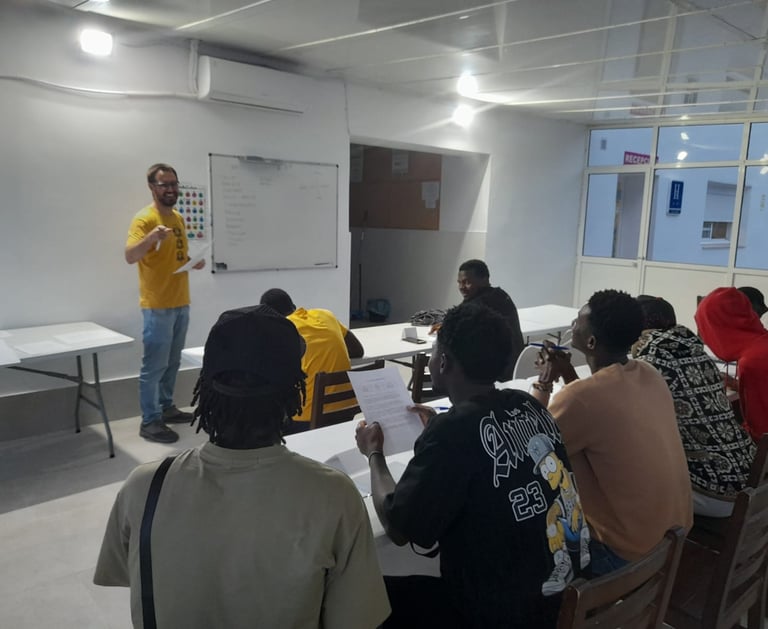 These classes are much more than a space to learn grammar or vocabulary. They are a place of encounter, respect, and resilience for migrants living at the El Pinar Center in Puerto Real. Many arrive with stories of effort and hope, and through learning the language, they find a way to express themselves, communicate, and rebuild their path in a new land.